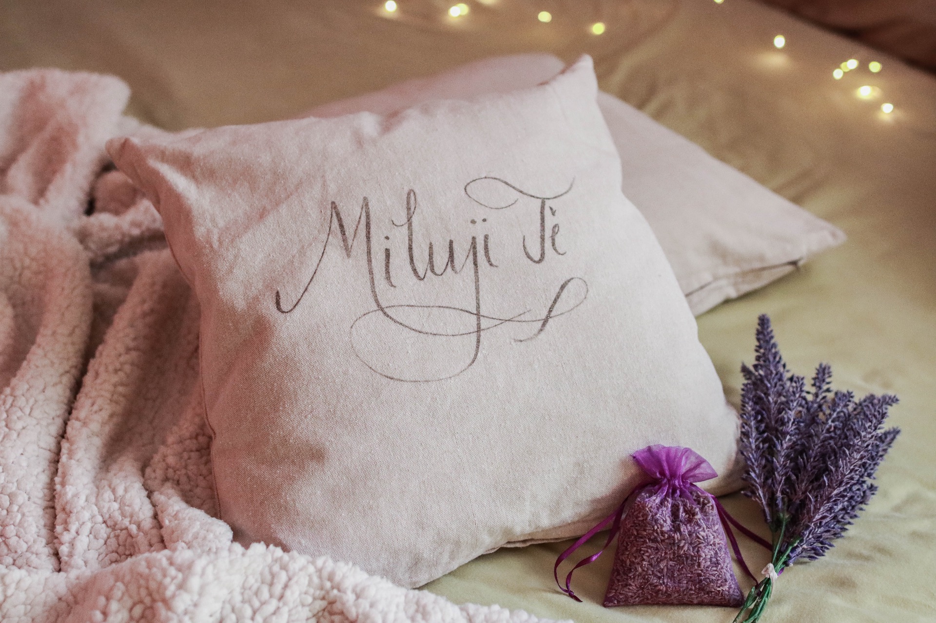 "Vůně levandule, pohodlí a objetí v každém polštáři." Jemná vůně levandule navozuje pocit pohody, zatímco slova připomínají chvíle, na kterých záleží. Ideální jako dárek z lásky, k výročí, narozeninám nebo jen tak - pro radost.