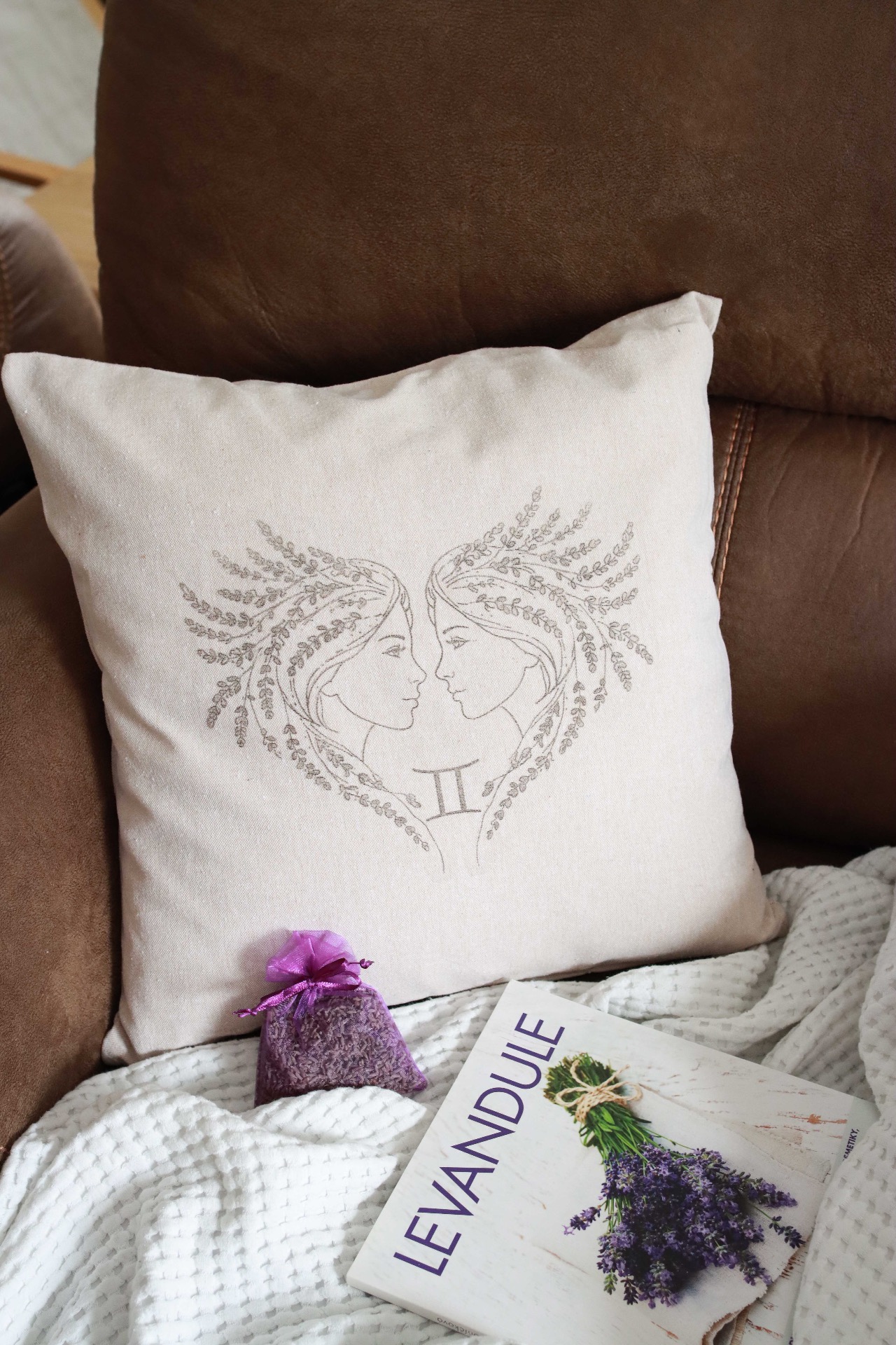 Dopřejte si klidný spánek v objetí přírody. Tento originální polštářek kombinuje poctivé řemeslo, jemnost 100 % bavlny a podmanivou vůni pravé levandule. Dominantou je autorský motiv Blíženci s levandulí, který na látku nanáším technikou ručního tisku - každý kousek je díky tomu jedinečným originálem. Každý polštářek mi projde několikrát pod rukama. Nejenže ručně tisku motiv Blíženci, ale osobně ho pro vás i plním vysoce kvalitním měkkým vláknem. Díky tomu je polštářek krásně nadýchaný, pružný a po vyvětrání se vždy vrátí do svého tvaru. Je to poctivý kus ruční práce od prvního otisku až po poslední zašití.